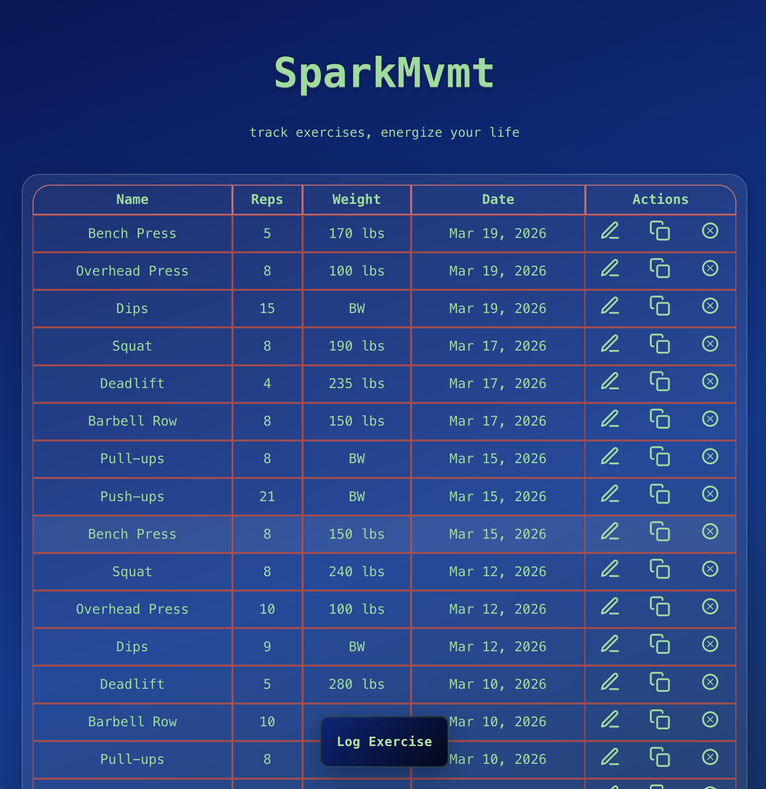 Full-stack exercise tracker with rotating JWT auth, demo mode, and a responsive single-page UI.